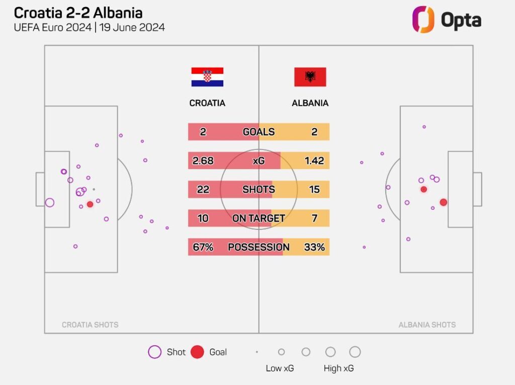Ndeshja mes Shqipërisë dhe Kroacisë sot ka qenë me një ritëm të pabesueshëm, me emocione dhe gjuajtje në të dy portat deri në sekondën e fundit të saj. Dhe pikërisht ky ritëm mbresëlënës ka bërë që ndeshja e sotme të jetë e denjë për librat e rekordeve.