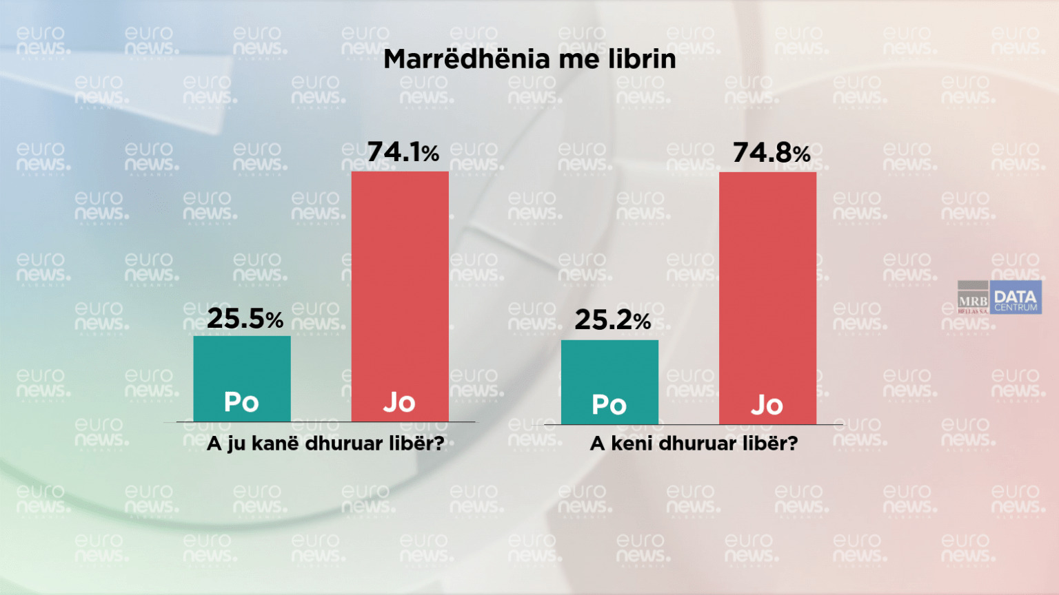 Shumica shqiptarëve jo vetëm që nuk blejnë libra, por as nuk dhurojnë. 74.8% e të pyeturve nuk kanë dhuruar një libër, ndërkohë që pozitivisht janë përgjigjur vetëm 25.2% e tyre. 74.1% e shqiptarëve nuk kanë marrë një libër dhuratë dhe vetëm 25.5% kanë marrë.