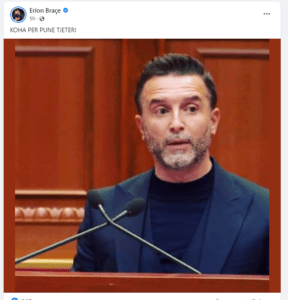 Braçe ka postuar një foto të tijën në Kuvend, teksa shkruan: “KOHA PER PUNE TJETER!”.