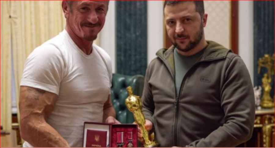 Aktori Sean Penn, i cili po bën një dokumentar për pushtimin rus të Ukrainës, i ka huazuar një nga dy Oscarët e tij presidentit ukrainas Volodymyr Zelensky.