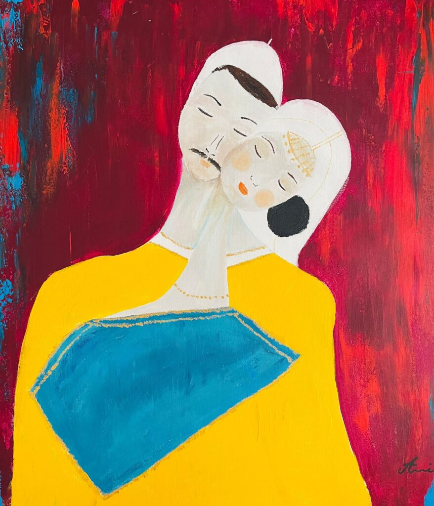 Për veprën “EMPATI”, Hetoja flet me pasion, pasi vetë piktura të flet për gjendje emocionale të artistes që përputhet me emocionet e një personi tjetër.