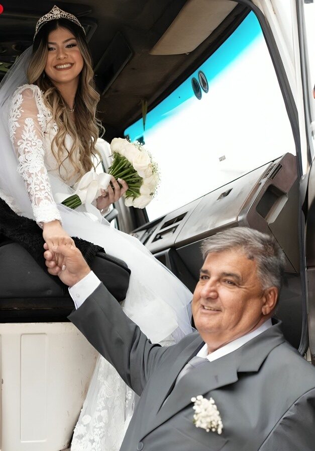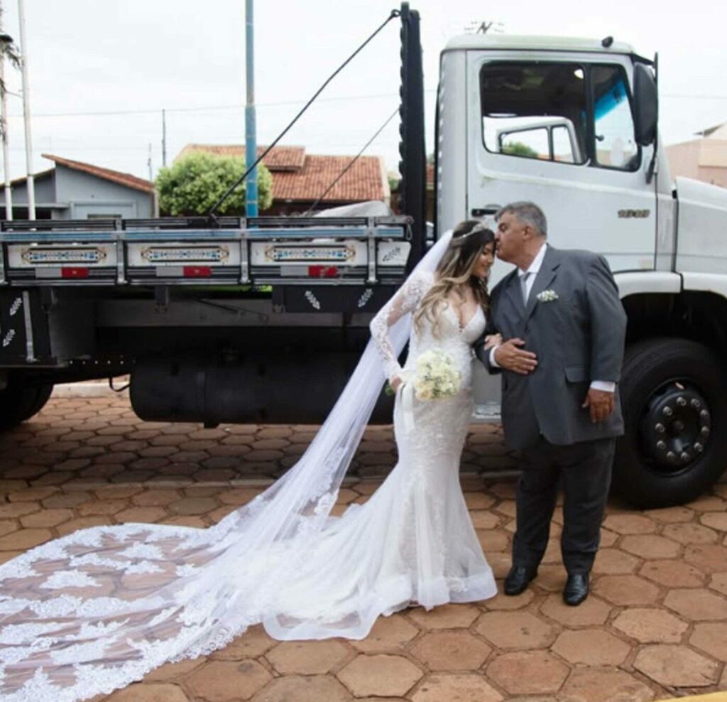 Në ditën e saj të madhe, ajo mbërriti në kishë me kamionin e punës së të atit, automjeti me të cilin ai kishte kaluar vite të tëra rrugëve të Brazilit, për të siguruar jetesën dhe ëndrrat e familjes së tij. Ky gjest, më shumë se simbolik, ishte një himn për përkushtimin prindëror dhe sakrificën e një babai që kishte punuar gjithë jetën me duar të palodhura, me zemër plot dashuri dhe përkushtim.