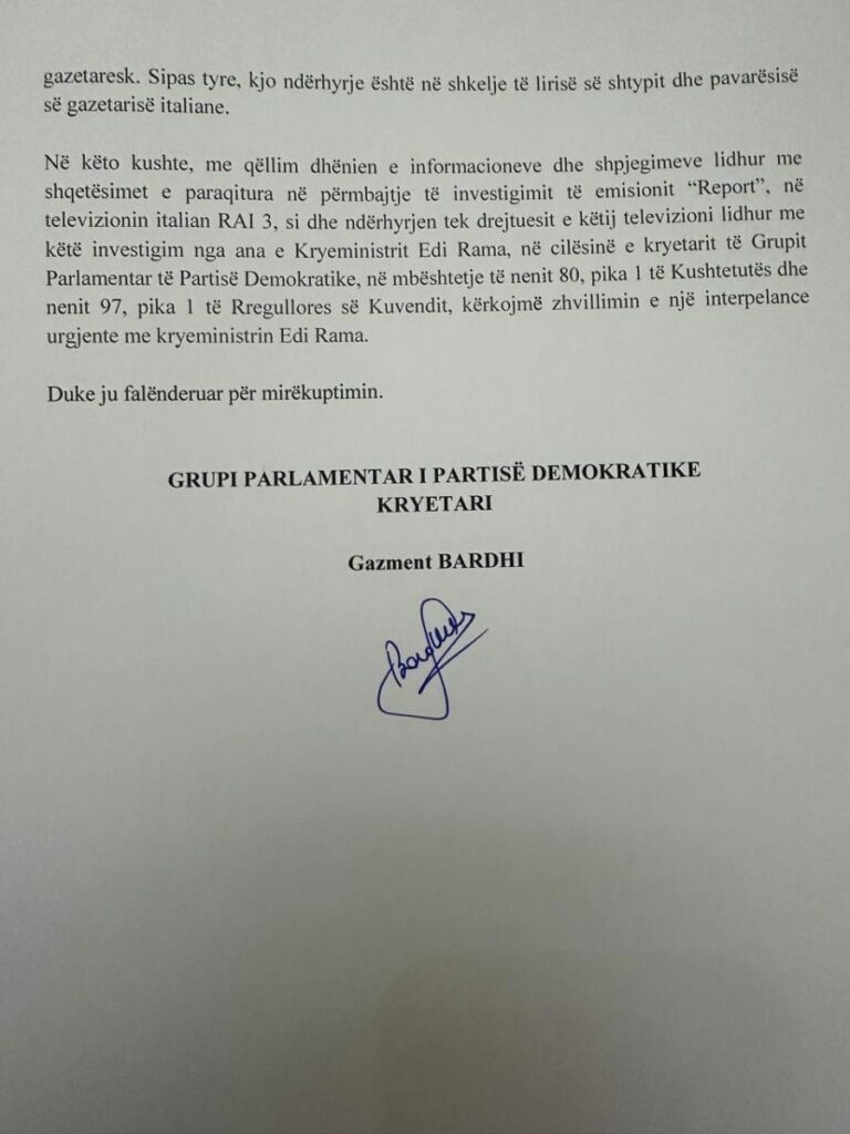 Shkurt llafi, s’ka asnjë urgjencë për një poshtërim të radhës të parlamentit të Shqipërisë me një interpelancë të kërkuar nga autorët e prapaskenës së asaj shfaqjeje të shëmtuar në dëm të krenarisë legjitime të çdo shqiptari për Shqipërinë, e në radhë të parë të shqiptarëve që jetojnë me nder e krenari sot në Itali, pasi kanë kaluar një kalvar të tërë poshtërimesh nga artikuj, emisione e gjasme investigime të tilla në të shkuarën e errët të shtypit italian e sidomos të RAI-t ndaj Shqipërisë. Të mbarojmë njëherë punë me ata andej dhe të thuhet e gjithë vërteta në italisht, pastaj patjetër do t’u vijë radha edhe këtyre këtej, se kjo histori nuk është fare aq e thjeshtë sa duket dhe shqiptarët padiskutim meritojnë ta dinë të gjithën, sapo të tëra petët e këtij lakrori me plehra të jenë hapur deri në fund. Kështu që xhahilët, çingijet e ahengxhinjtë e tyre, le të vazhdojnë tallavanë e tyre me dollitë e gëzimit për denigrimin e Shqipërisë në atë emision skandaloz dhe le të mbrojnë Italinë e lirinë e RAI-it nga ndërhyrjet e mia, se helbete si njerëz pa atdhe që janë, punojnë për çdo të huaj që me qëllim apo nga padija është gati ta denigrojë Shqipërinë, duke nxjerrë në mexhelise jashtë kufijve tanë plehrat e shtëpisë së këtyre këtu.