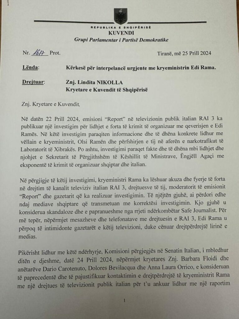 Interpelanca urgjente me Edi Ramën e kërkuar nga Rithemelimi pas investigimit të televizionit italian Rai3, duket se nuk ka gjasa të ndodhë së shpejti.