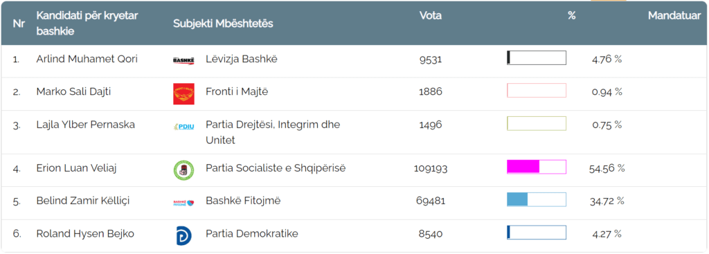 Më konkretisht, Veliaj deri në këto momente ka 109193 vota, ndërsa kundërshtari i tij vetëm 69481 vota.