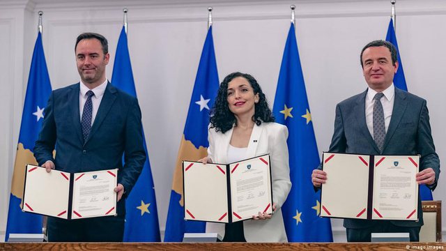 Vjosa Osmani, Albin Kurti dhe Glauk Konjufca dorëzojnë kërkesën për anëtarësimin e Kosovës në BE