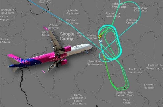 Avioni Airbus A321neo ka provuar për rreth dy orë të ulet në aeroportin e Shkupit, por nuk ia ka dalë. Pas 17 rrotullimeve mbi aeroport, avioni ka shkuar drejt Prishtinës në Kosovë, ku ka zbritur pa probleme.