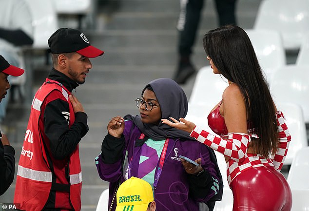 Ndërkohë, një tjetër atmosferë ishte në tribuna, ku mes mijëra të pranishmëve ka rënë sërish në sy modelja kroate Ivana Knoll. Ish-miss Kroacia ka marrë vëmendjen e fansave që në ndeshjet e grupeve, ndërsa në këtë takim, një grup tifozësh janë parë teksa fotografonin modelen, e cila nuk heziton aspak të ekspozojë format e saj.
