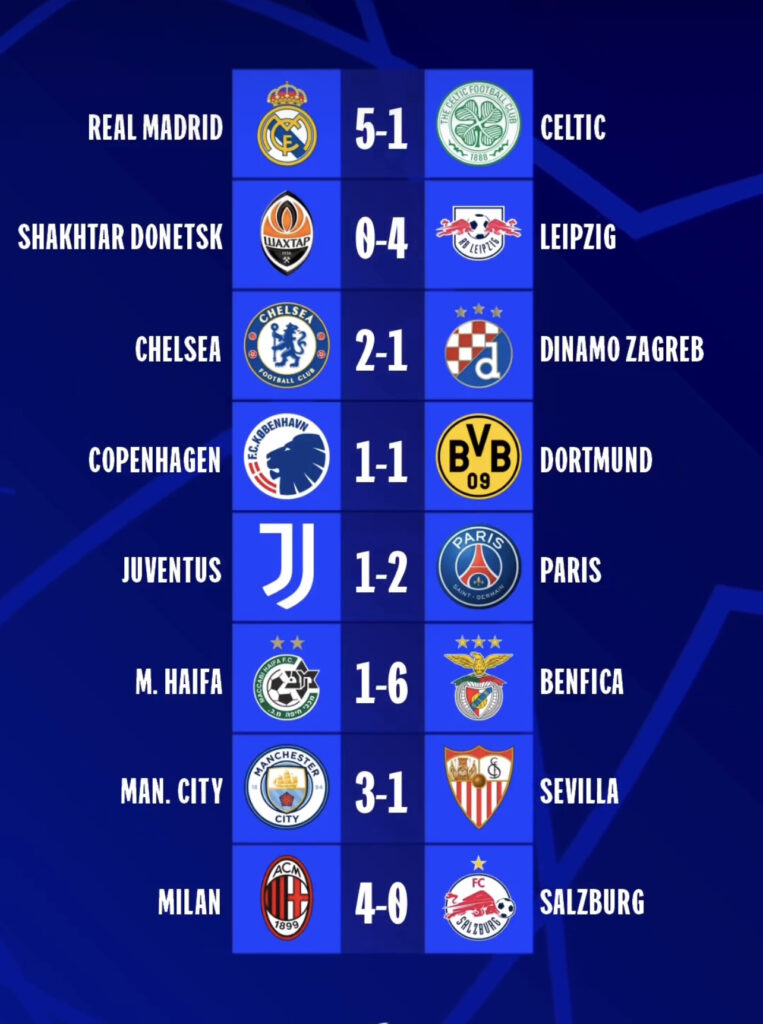Ishte një mbrëmje e cila e dhuroi emocione dhe numrat flasin qartë, 33 gola të shenuar në 8 sfidat e luajtura ku fitoren më të thellë e arriti Benfica kundër Maccabi Haifa 1-6.