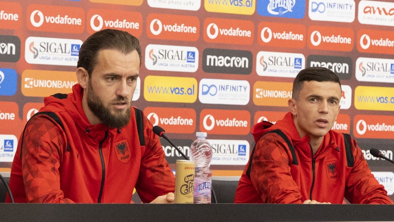 Sulmuesi Sokol Cikalleshi shoqëroi trajnerin Sylvinho në konferencën për shtypin, në prag të ndeshjes me Poloninë.