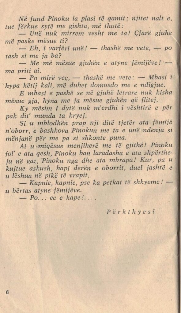 Në parim, një pyetje e tillë konkurruese nuk duhet bërë, për cilindo element të një kulture. Por parathënia e Cuk Simonit për Pinokun, të përkthyer prej tij dhe të botuar për së pari më 1938 në Shkodër, mund të cilësohet me të vërtetë “e pakundshoqen”, siç thuhet në gegnishte.