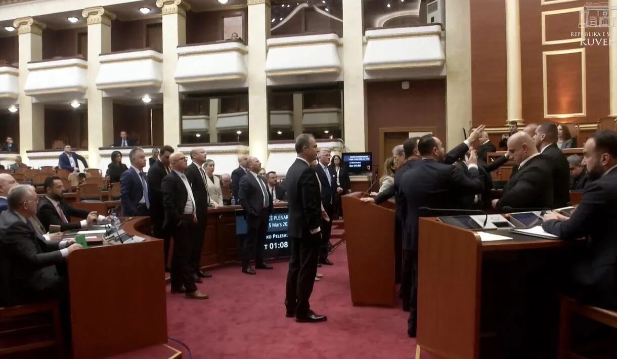 Ata kërkojnë që të marrin fjalën për procedurë, ndërs Niko Peleshi u kërkon që të ulen dhe të marrin fjalën për procedurë.