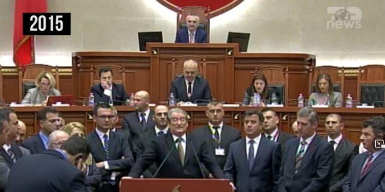 Tetë vite më parë, në një seancë të nxehtë parlamentare, Berisha kërkonte dorëheqjen e Ilir Metës nga posti i Kryetarit të Kuvendit, me akuzën se kishte planifikuar vrasjen e deputetit Tom Doshi.