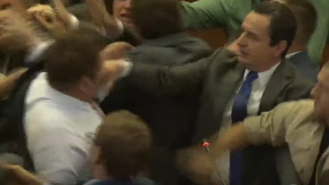 Barku sa koshi i Armend Mujës dukej si topi i Mic Sokolit derisa e mbronte Albin Kurtin nga pikat e ujit të shishes së opozitës.
