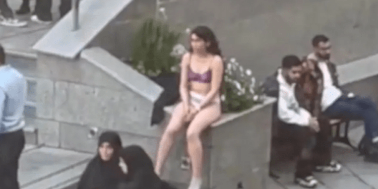 Vetëm në të brendshme dhe me flokët zbuluar në një vend ku kjo sjellje është rreptësisht e ndaluar.