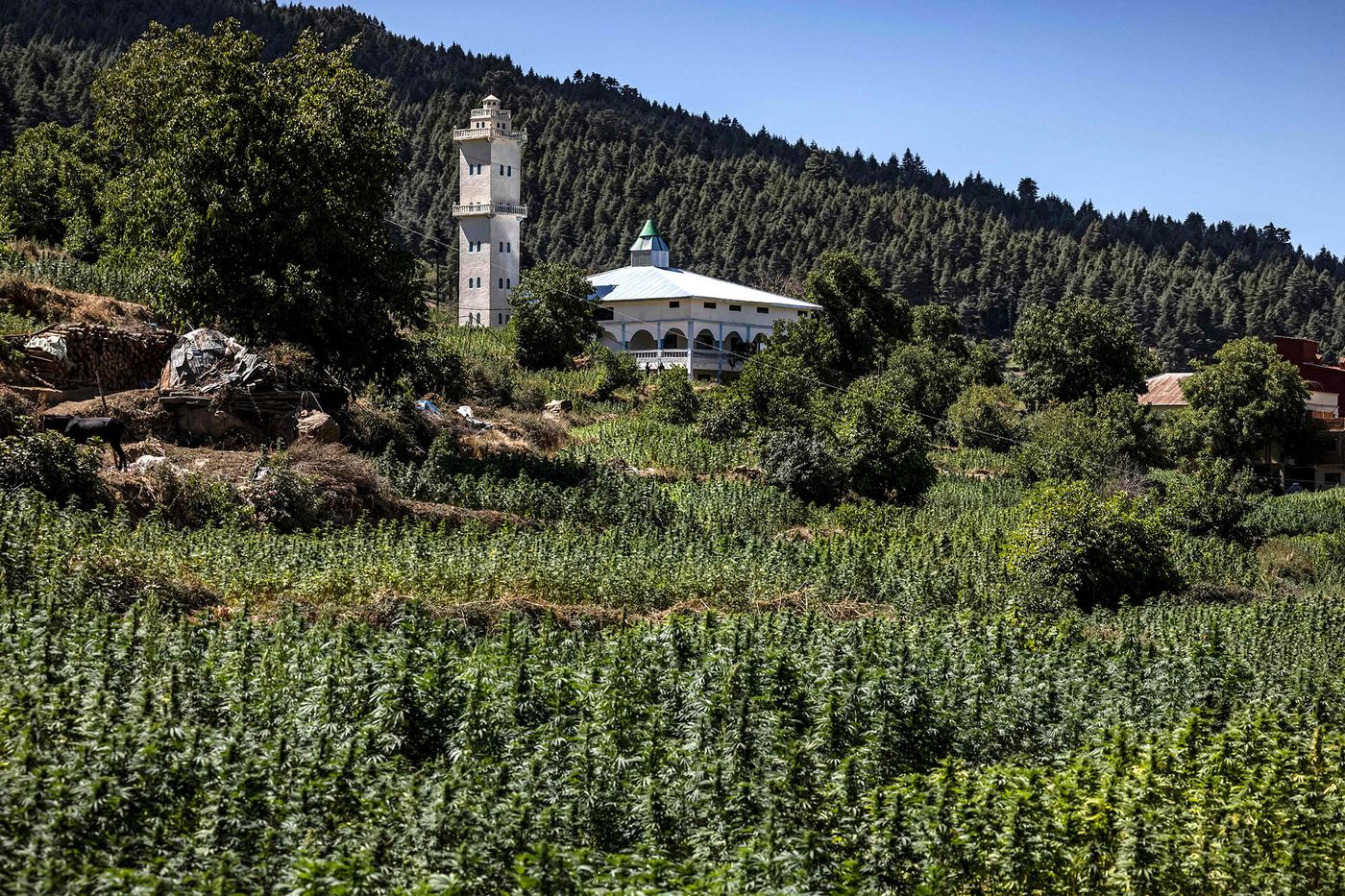 “Baroni i drogës është guri i themelit të komunitetit,” tha Mohamed Bousemath, një fermer 27-vjeçar në Tamadit, një grumbull 6 metra i lartë me bimë të thara kanabisi të grumbulluara mjeshtërisht në shtëpinë e tij me çati prej kallaji. “Kur shteti nuk mbante përgjegjësinë e tij ndaj këtij rajoni, baroni i drogës kujdesej për ne duke blerë të korrat çdo vit.”