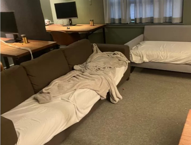 BBC ka publikuar gjithashtu fotografi të divaneve në kompaninë e Twitter duke u përdorur si shtretër.