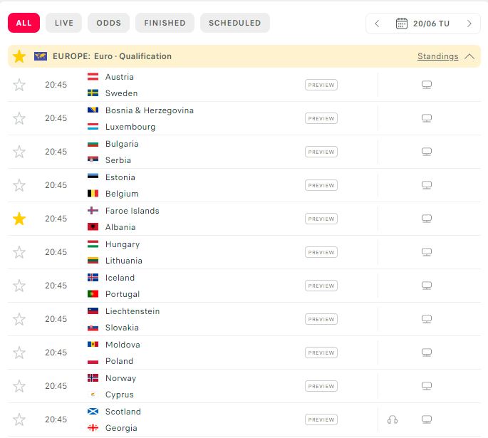 Gjithashtu në fushën e blertë do të zbresin kombëtare si Portugalia, Belgjika, Norvegjia, Islanda, skuadra që do të kërkojnë fitoren mbrëmjen e sotme.