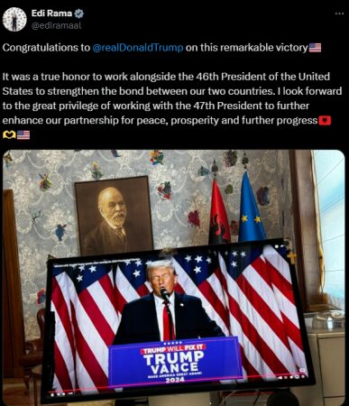 Mezi pres privilegjin e madh të punoj me Presidentin e 47-të për të përmirësuar më tej partneritetin tonë për paqe, prosperitet dhe përparim të mëtejshëm.