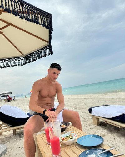Në njërën prej fotografive që publikoi ajo ishte edhe ajo e Ronaldos, i cili po shijonte një vakt të freskët.