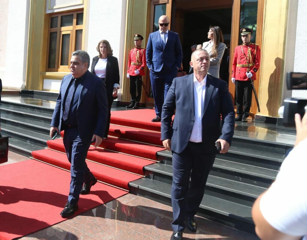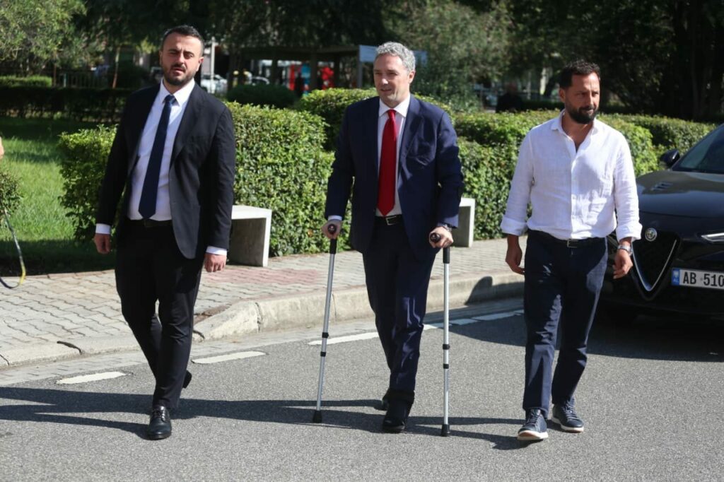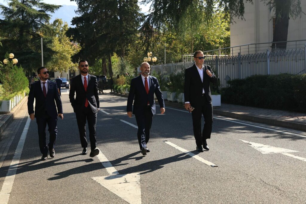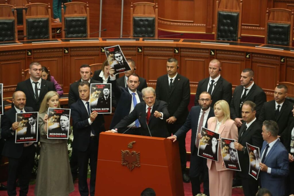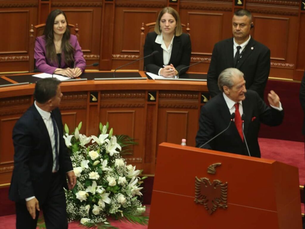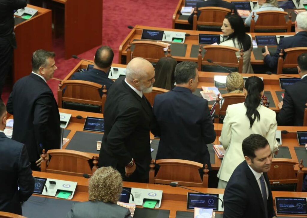 Pas nisjes së seancës plenare e cila zgjati vetëm 24 minuta, në një tjetër foto duket lideri i demokratëve Sali Berisha, në të njëjtin rresht me kryeministrin Rama, dhe një moment ky i fundit hedh një shikim ndaj kundërshtarit të tij.