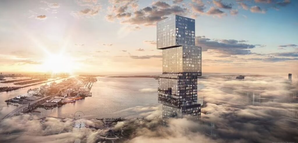 Pothuajse 320 metra, Waldorf Astoria do të ndërtohet me teknika të reja sigurie dhe do të jetë i përfunduar në vitin 2027.