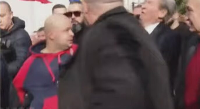 Menjëherë kanë ndërhyrë truprojat të cilët e kanë goditur me grushte dhe shqelma personin  që goditi liderin historik të PD-s.