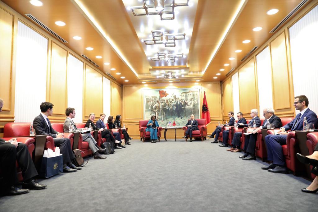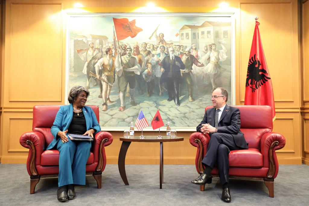 Ambasadorja Linda Thomas-Greenfield, përfaqësuese e Shteteve të Bashkuara të Amerikës në Kombet e Bashkuara dhe Këshillin e Sigurimit të OKB-së është pritur sot në një takim nga Presidenti i Republikës së Shqipërisë Sh.T.Z Bajram Begaj. Vizitën në Tiranë të Ambasadores Linda Thomas-Greenfield, Presidenti Begaj e cilësoi mjaft domethënëse në kuadër të 100-vjetorit të marrëdhënieve diplomatike midis dy vendeve.