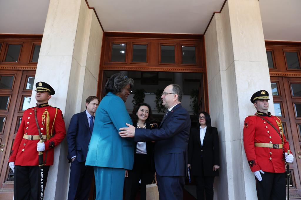 Ambasadorja Linda Thomas-Greenfield, përfaqësuese e Shteteve të Bashkuara të Amerikës në Kombet e Bashkuara dhe Këshillin e Sigurimit të OKB-së është pritur sot në një takim nga Presidenti i Republikës së Shqipërisë Sh.T.Z Bajram Begaj. Vizitën në Tiranë të Ambasadores Linda Thomas-Greenfield, Presidenti Begaj e cilësoi mjaft domethënëse në kuadër të 100-vjetorit të marrëdhënieve diplomatike midis dy vendeve.