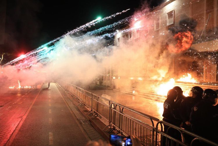 Siç ka ndodhur edhe në protestën e 10 shkurtit, zjarri dhe sulmi ndaj institucionit ka nisur menjëherë pasi kreu i PD-së, Sali Berisha përfundoi fjalën e tij.