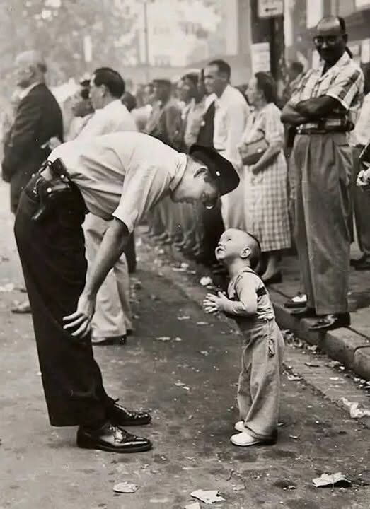 Nga ajo shtypje e butë e këmbëzës së aparatit lindi një nga imazhet më ikonike të fotografisë së shekullit XX. Një foto që nuk është thjesht dokumentim, por poezi e gjallë, ku përballë një force të rritur, autoriteti i uniformës, shfaqet pafajësia e fëmijërisë, jo në përplasje, por në dialog të qetë e njerëzor.