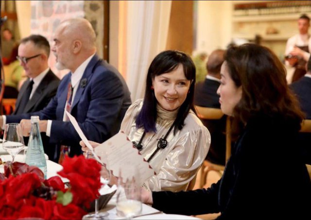 Teksa Rama ka publikuar një sërë fotosh nga mbrëmja, është vënë re edhe prezenca e bashkëshortës së tij, Linda Rama, ku përshëndet e bisedon me të ftuarit.