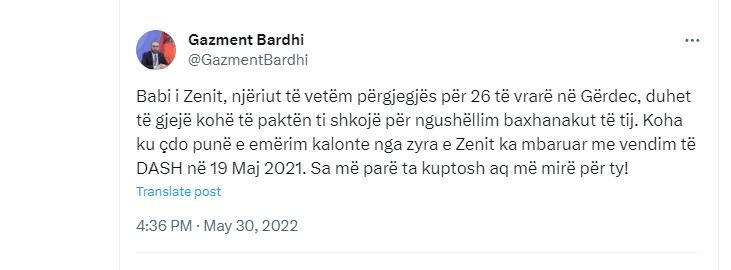 ‘O babi i Zenit, je përgjegjës për 26 të vrarë në Gërdec’, akuzat e Bardhit për Berishën
