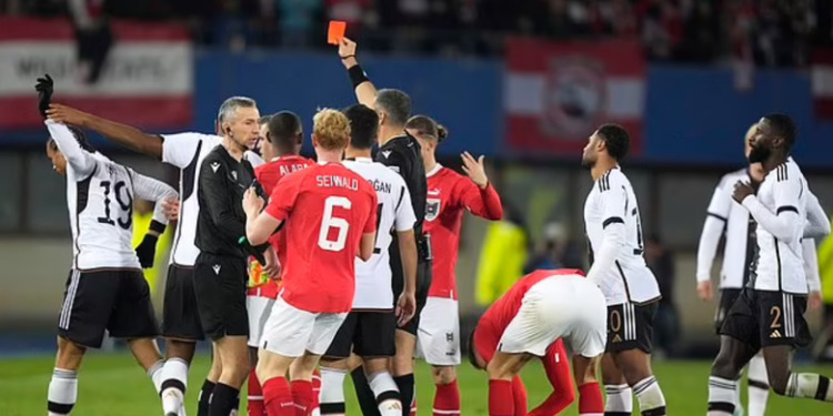 Sulmuesi i “Die Mannschaft” u përjashtua nga sfida në minutën e 49-të, pasi kapi dhe shtyu me të dyja duart në fytyrë, mbrojtësin e majtë të Austrisë, Phillipp Mwene.