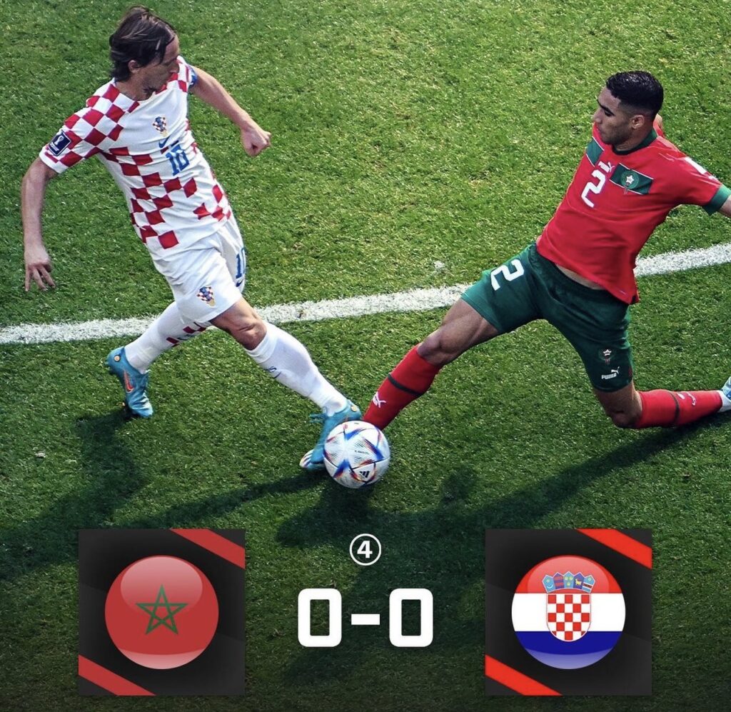 Pjesa e dytë fillon pak më kërkuese nga të dyja ekipet që tentojnë ti afrohen golit dhe i pari moment real është për Marokun në minutën e 65’ ku Hakimi në një goditje dënimi lëshon një “predhë” drejt portës kroate por fatmirësisht Livakovic është pozicional duke grushtuar goditjen. Fill pas këtij momenti Kroacia tenton të “zgjohet” por përsëri rreshtimi me forca të shumta në prapavijë i Marokut ja bën shumë të vështirë krijimin e manovrës sulmuese duke e ndarë ndeshjen 0-0.
