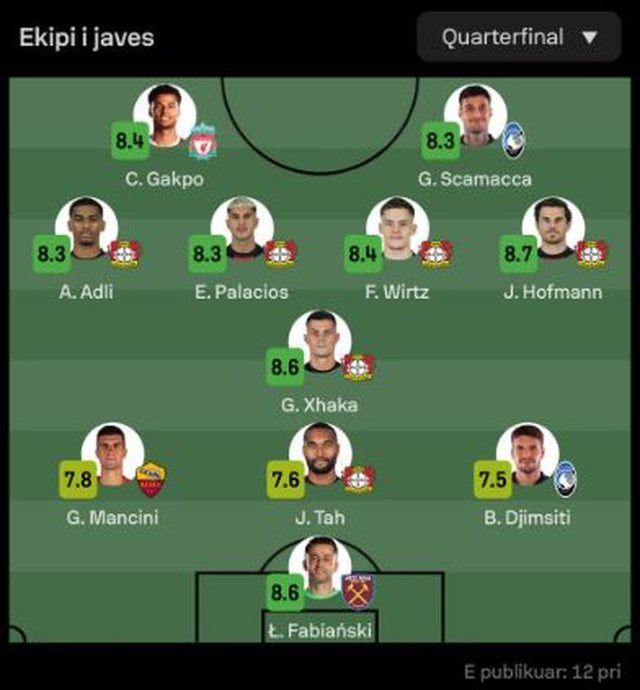 Në sy bie edhe numri i lartë i futbollistëve të Leverkusenit që kanë shkëlqyer, ndërsa nga Milani nuk ka asnjë lojtar.