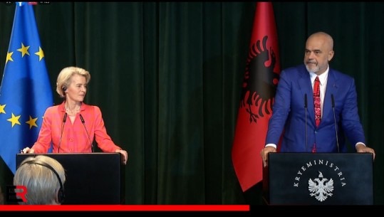 Kështu deklaroi nga Tirana, ku po zhvillon një konferencë për mediat me kryeministrin shqiptar, Presidentja e Komisionit Europian Ursula von der Leyen. Sipas presidentes, çelja e negociatave të anëtarësimit të Shqipërisë është rezultat i reformave disa vjecarë të vendit.