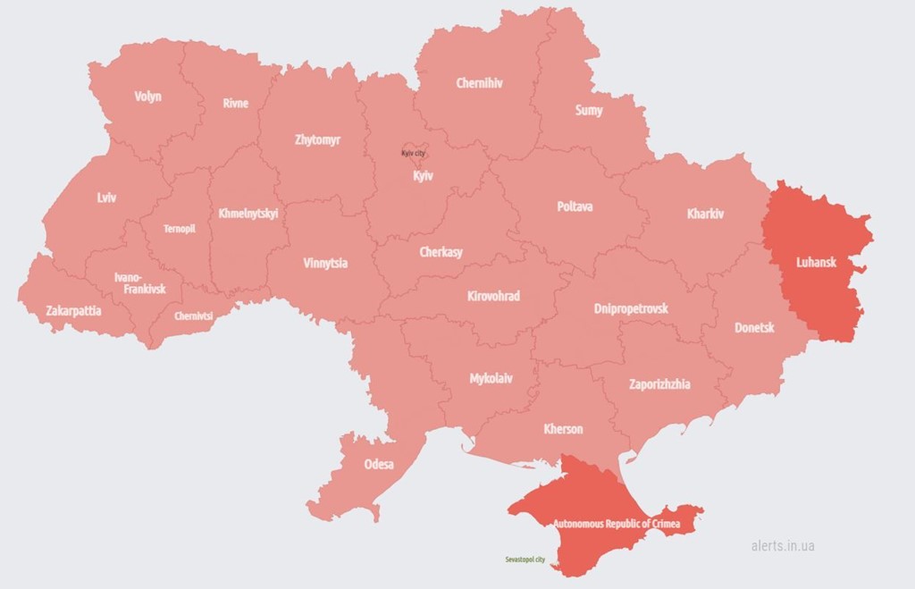 Sirenat e alarmit po bien në të gjitha rajonet e Ukrainës për momentin, një tregues se një valë tjetër bombardimesh ruse mund të jetë e afërt.
