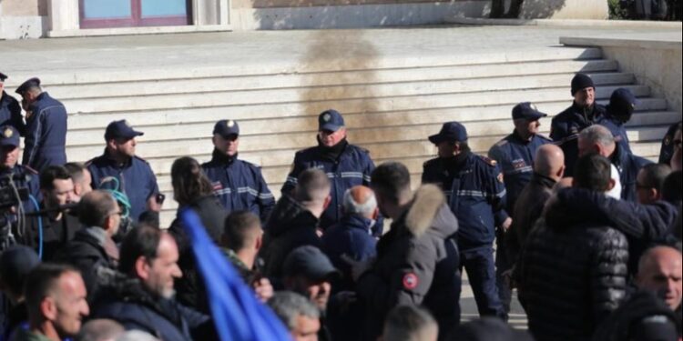 Mes personave të vënë nën hetim është edhe 21 vjeçari nga Durrësi i cili ishte veshur një uniformë policie dhe po qëndronte në afërsi të dy kullave. Ai u pikas në protestë teksa qëndronte në afërsi të dy kullave, i veshur me uniformë policie me logo e stema të vjetra, e cila nuk përdoret aktualisht nga shërbimet e Policisë.