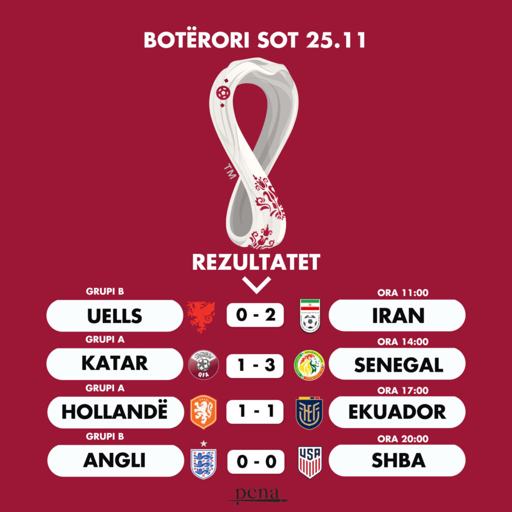 Ka nisur raundi i dytë i Botërorit dhe Katari është i eleminuari i parë i këtij kompeticioni pasi është mundur 1 – 3 nga Senegali. Hollanda ka ngecur kundër Ekuadorit në barazim 1 – 1 dhe në kto kushte i le llogaritë e hapura për kualifikim. Hap fals ka bërë dhe Anglia që është ndarë në barazim pa gola me SHBA-në. Irani arrin një fitore historike duke mundur Uellsin me rezultatin 2 – 0 dhe duke ndezuar kështu shpresat për një kualifikim në fazën tjetër.