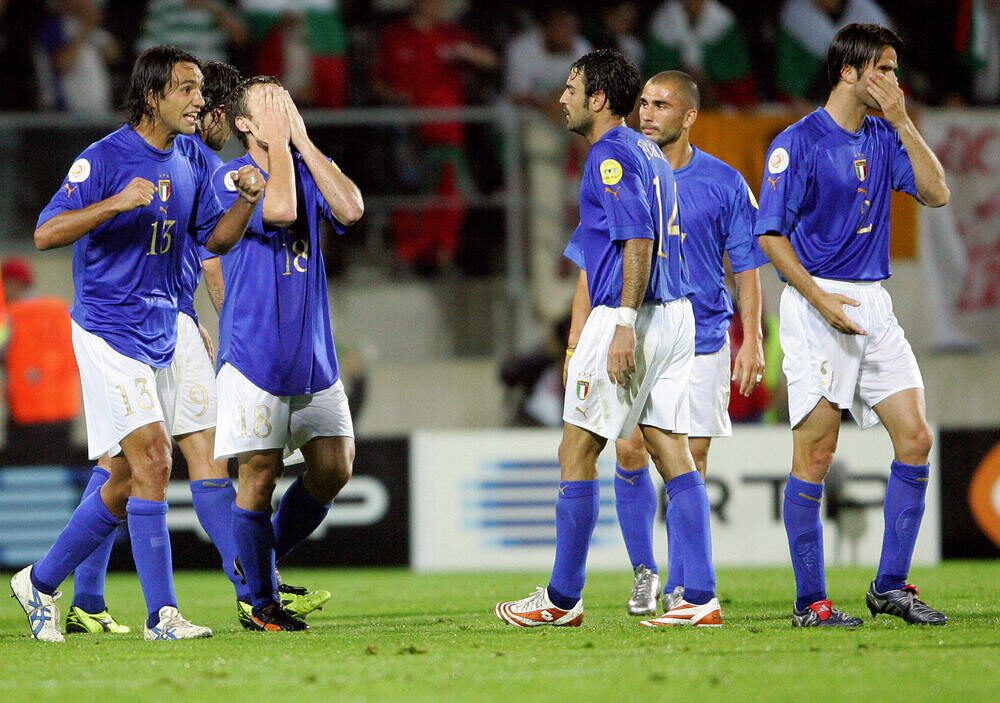 Në Kampionatin Europian që u zhvillua në Portugali në vitin 2004, Italia kishte nevojë që të mundte Bullgarinë dhe Danimarka e Suedia të mos barazonin që ajo të avanconte.
