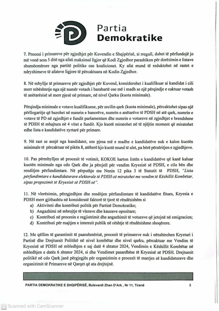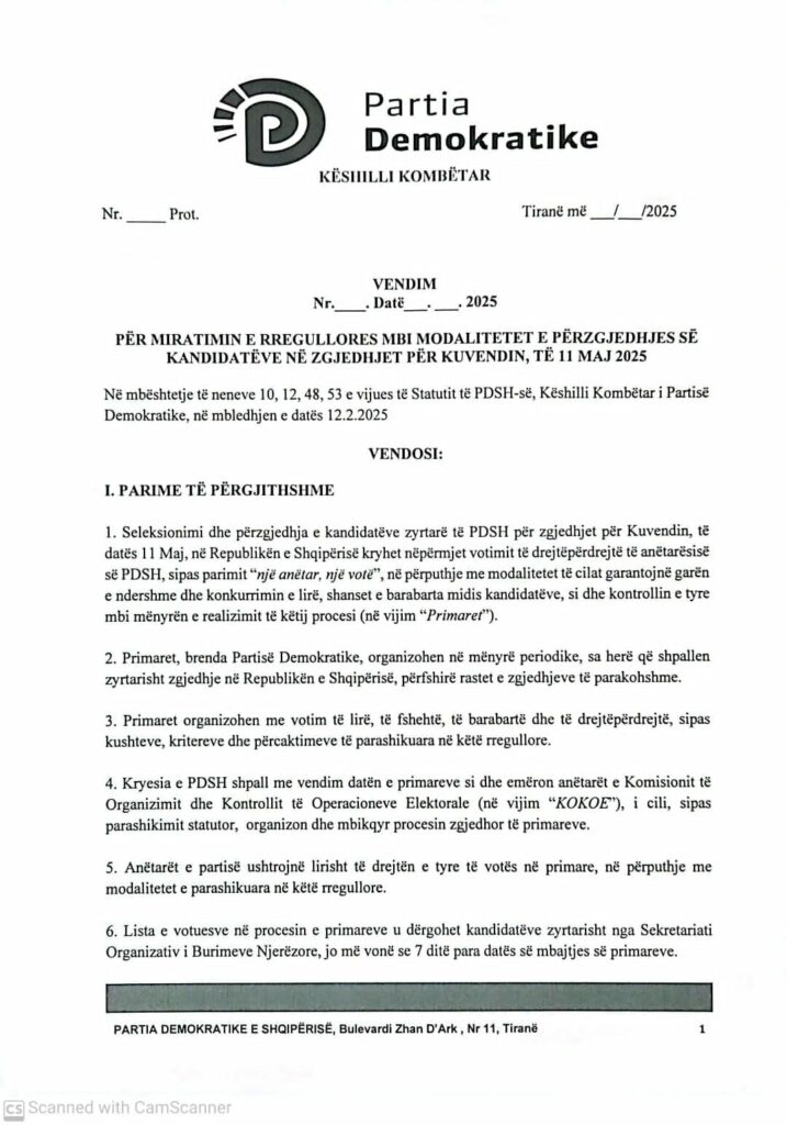 Top Channel ka siguruar udhëzimin për përzgjedhjen e kandidatëve për deputetët të Partisë Demokratike.