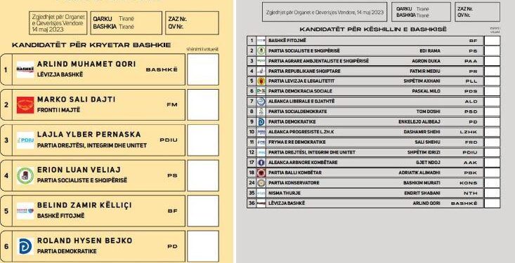 Ndryshimin e vendimeve nr. 360 dhe 363 të KSH, datë 15.04.2023, duke ndryshuar përmbajtjen e fletës së votimit për kandidatët për Kryetar Bashkie, Bashkia Tiranë, si dhe për 60 bashkitë e tjera në vend, duke vendosur heqjen e Logos së Partive dhe/ose të Koalicioneve, nga përmbajtja e fletës së votimit për Kandidatët për Kryetar Bashkie.