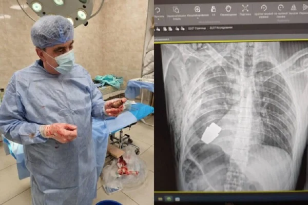 Kirurgët hoqën mjetin shpërthyes pikërisht poshtë zemrës së ushtarit të plagosur dhe dy ushtarë u siguruan që operacioni të kryhej në mënyrë të sigurt, tha Hanna Maliar, zëvendësministrja e mbrojtjes e Ukrainës. Ajo ka publikuar edhe një foto ku shihet një rëntgen e një granate në trupin e ushtarit.