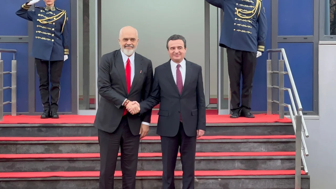 Kryeministrat Edi Rama dhe Albin Kurti po zhvillojnë një takim pas seancës së përbashkët në Kuvendin e Kosovës.