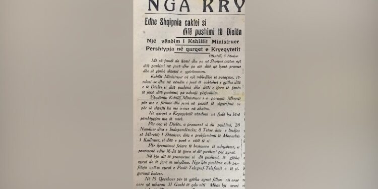 Gjatë këtyre ditëve, zyrat e shtetit do të ishin të mbyllura, me përjashtim të Post-Telegrafës dhe policisë.