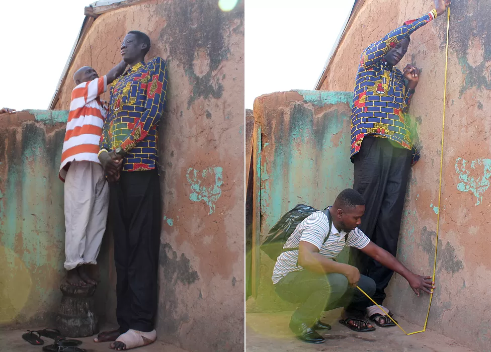 I diagnostikuar me gjigantizëm disa vite më parë, i riu po ndiqte një takim mujor për t’u marrë me komplikimet e të jetuarit si gjigant, kur iu kërkua të qëndronte drejt kundër një shufre matëse. I njohur për të gjithë me pseudonimin e tij Awuche, që do të thotë “Le të shkojmë” në Hausa, ai u befasua nga spektakli që po shkaktonte.