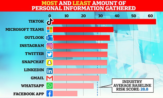 TikTok, ndiqet nga Microsoft Teams, Outlook, Instagram, Twitter dhe Snapchat në dhjetëshen kryesore të 22 kompanive madhorë që mbledhin më shumë të dhëna nga përdoruesit e tyre.