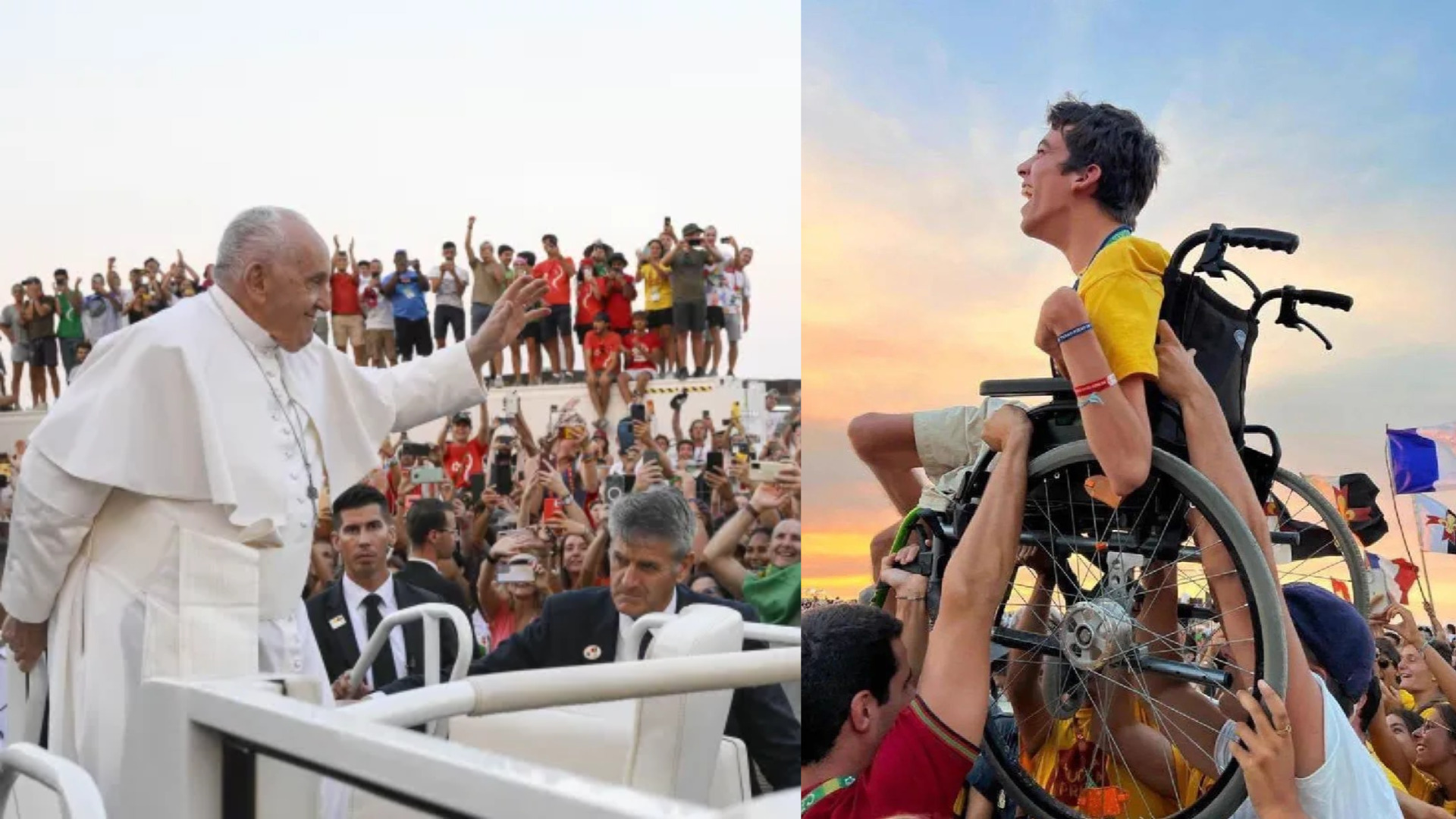 “I riu këtu në foto është ngritur lart nga shokët e tij që ai të mund të shihte Atin e Shenjtë, Papën Françesk, tek fliste në mbyllje të Ditës së Rinisë mbajtur në Lisbonë përpara me shumë se 1 milion të rinjve nga e gjithë bota.