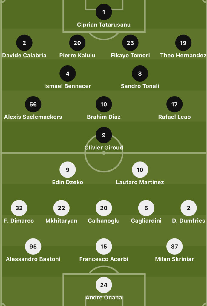 Formacionet ende nuk janë bërë zyrtare por Milani do mbështet patjetër tek arma e tyre më e fortë, Rafa Leao, i cili në ndeshjen e fundit në kampionat kundër Interit shkëlqeu me 2 gola dhe 1 asist duke përmbysur gjithçka. Kujtim jo shumë i mirë për Interin ajo ndeshje dhe sonte me patjetër që do kërkojnë “hakmarrje” dhe për momentin do i falen formës pozitive që sulmuesi boshnjak Edin Dzeko po kalon.